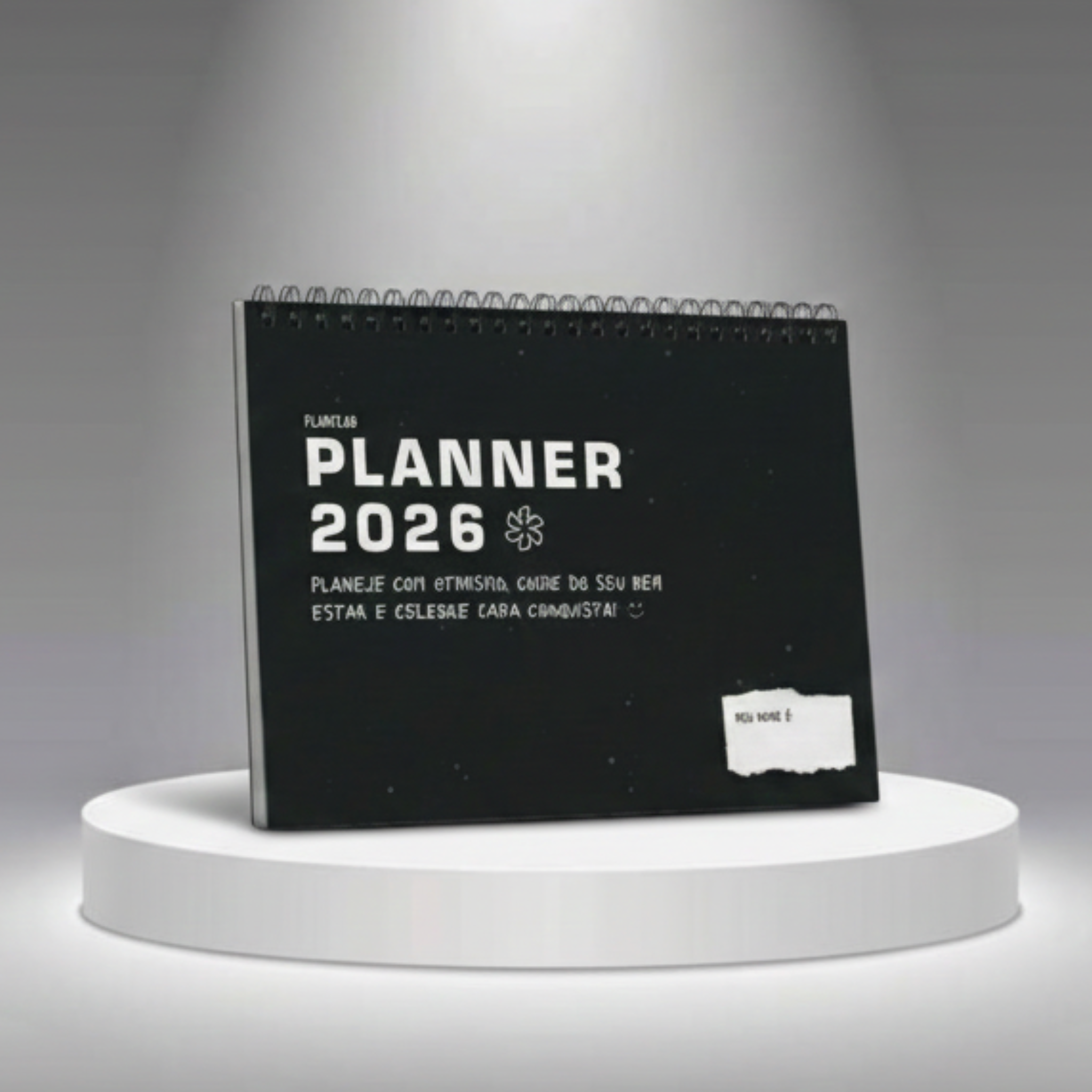 Nosso Planner tem o tamanho A5, 14 páginas, espaço para anotações, definição de metas e o calendário de cada mês de 2026.