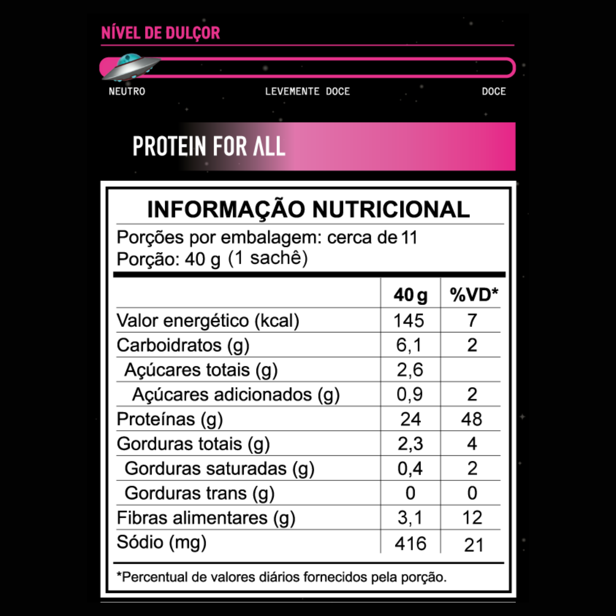 Cada porção (40g + 200ml de água) contém 24g de proteína.